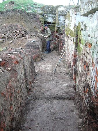 ścian działowych oraz posadzka. Dzięki odkopaniu obu wybieżni możliwa jest już komunikacja ze schronu głównego (koszar) do stanowisk artyleryjskich. Do tej pory było to niemożliwe. Przed tradytorem została usunięta ziemia odsłaniając wspaniały widok na "równię strzelecką", czyli pole ostrzału armat obejmujące zasięgiem przedpole fortu XIV „Hurko” oraz drogę Przemyśl-Medyka.