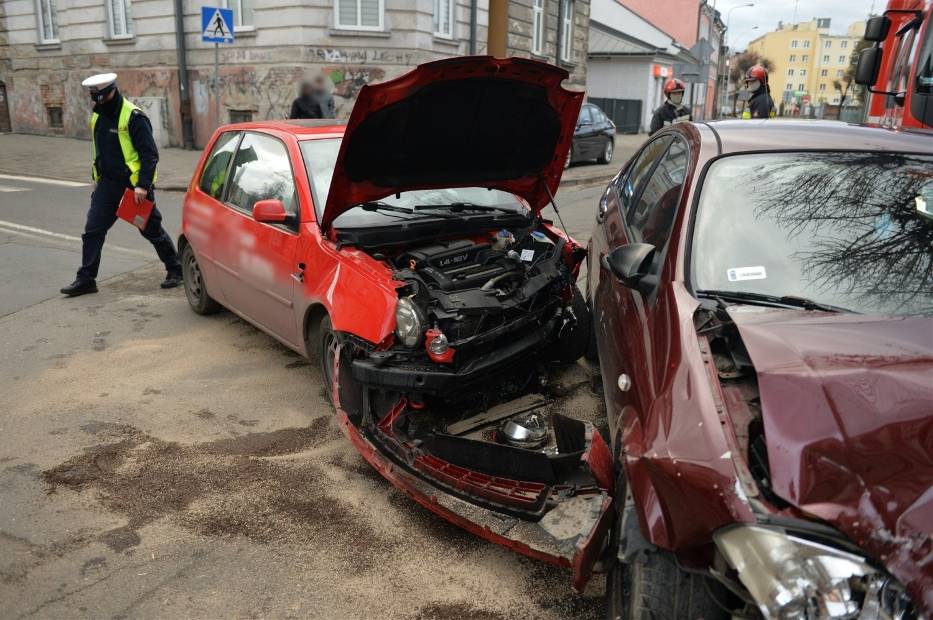 Do zdarzenia doszło w niedzielę po godz. 14. Kierujący volkswagenem, wyjeżdżając z ul. Żołnierzy I Armii Wojska Polskiego, nie ustąpił pierwszeństwa kierującemu nissanem, który jechał ul. Dworskiego. Pogotowie ratunkowe zabrało do szpitala rannego mężczyznę z nissana.